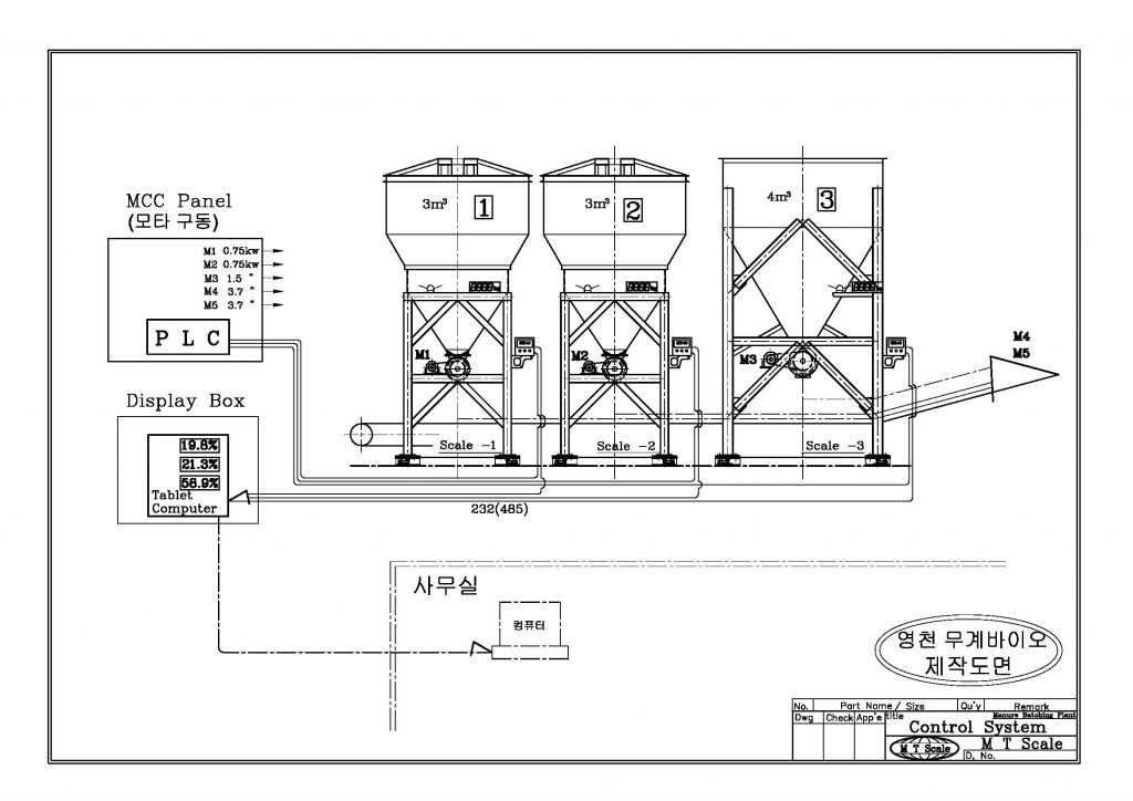 3set의 Scale unit, MCC Panel, 배합비 연산용 Tablet P C의 구성도입니다.