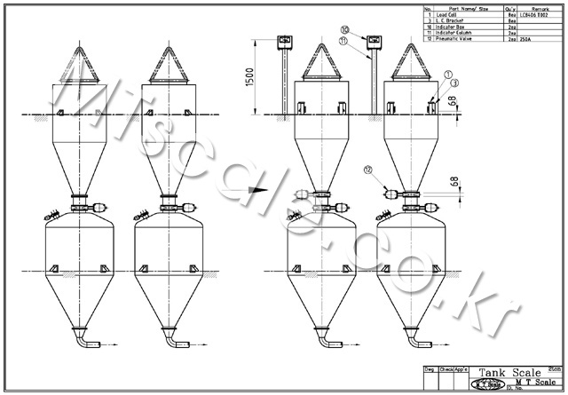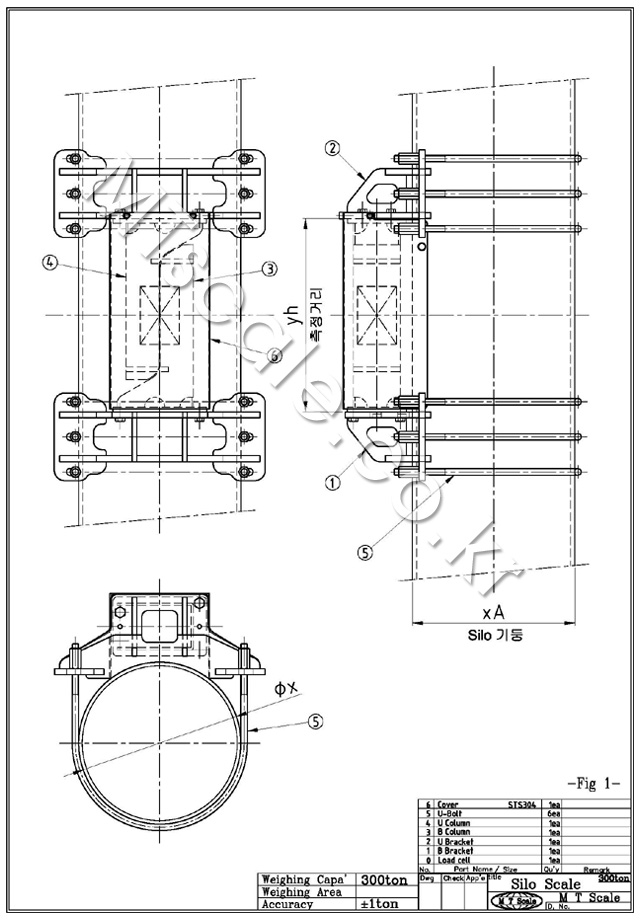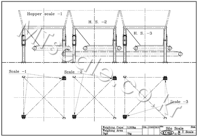 <Fig – 1 : Hopper type의 Silo 기둥에 로드셀을 부착하는 Silo Scale도면>