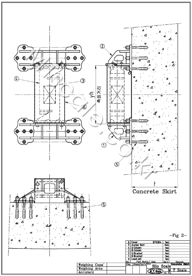 <Fig – 2 : Skirt type의 Concrete Skirt에 로드셀을 부착하는 Silo Scale도면>