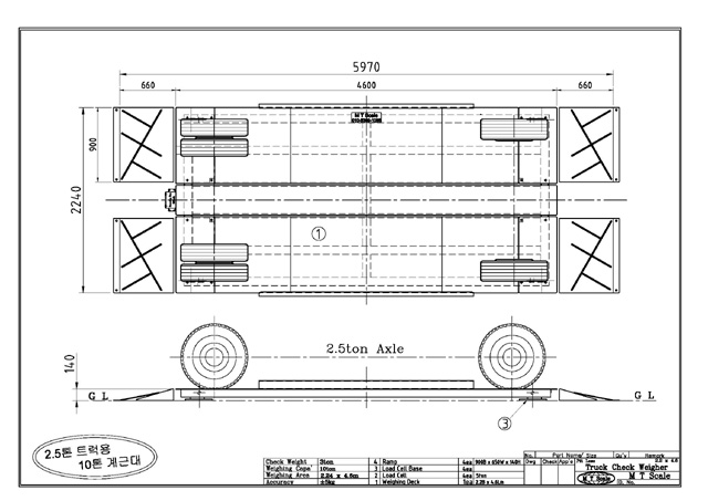 → 설치 예) 2.5 톤 트럭 용, 10 톤 계근대