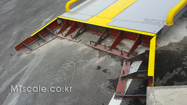 <계량판의 “요동 방지장치”를 설치한 동하중 트럭스케일입니다.>