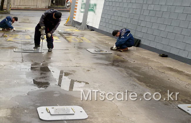 로드셀 베이스 설치작업 입니다.(노면에 직접 설치합니다.