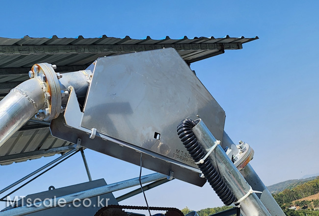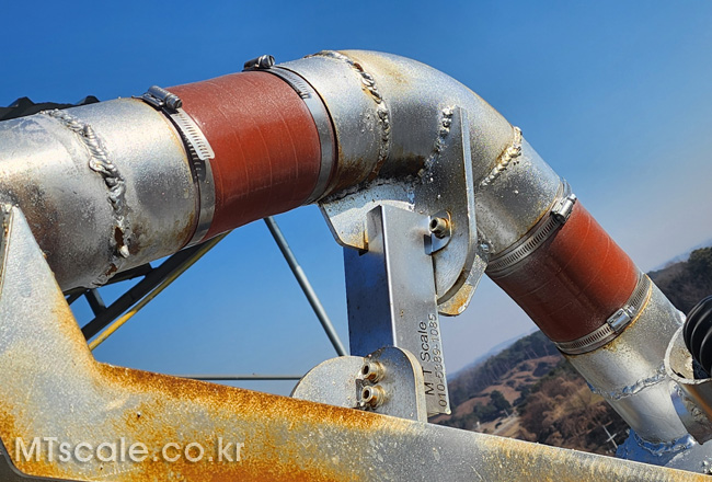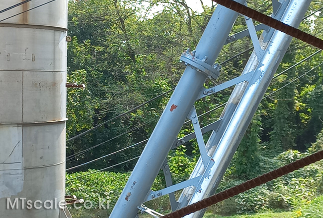 3, 공급 Tank의 기둥에 로드셀을 부착하여 Tank내의 잔량을 읽어서 제어합니다. (Silo scale을 활용하여 실시간 잔량을 무게로 표시하고, 수송 System을 Control 합니다.)