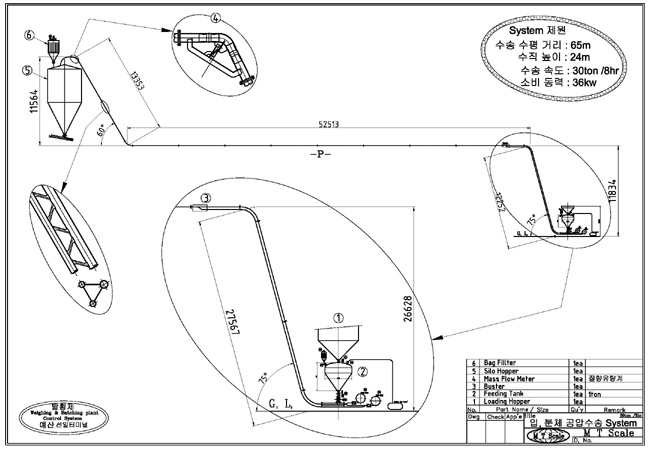 <입상체(곡물, 모래 등), 분체(시멘트) 공압수송 System>